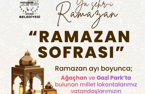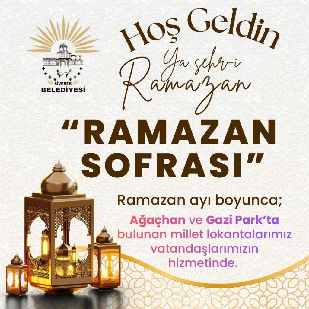 Her gün Cumhuriyet Caddesi üzerinde bulunan Ağaçhan parkı ile Hürriyet Caddesi üzerindeki Gazi Park’taki Millet Lokantalarında kurulan “Ramazan Sofrası'' vatandaşlara hizmet verecek.