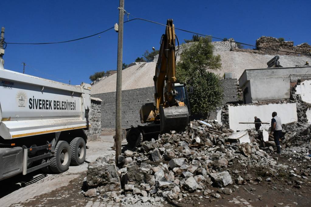 “Tarihi Siverek kalesi eteklerinde bulunan metruk binaların belediyemiz tarafından kamulaştırılması yapılarak burada yaşayan vatandaşlarımızın yoğun talepleri üzerine madde bağımlarının mesken haline getirdiği metruk binaların yıkımını gerçekleştiriyoruz. Belediye Başkanımız Ali Murat Bucak'ın talimatları doğrultusunda kamulaştırılması yapılan 4 evimizin 2 sinin yıkımını tamamladık. Kalan evlerinde boşaltılmasının ardından yıkımını gerçekleştireceğiz.”
