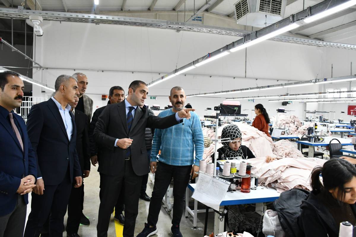 Temel atma programının ardından Siverek Belediyesi ile Kalkınma ajansı işbirliğiyle tamamlanan fabrikayı işleten yatırımcı Adlan Sürücü'ye ait tekstil fabrikasını ziyaret etti.