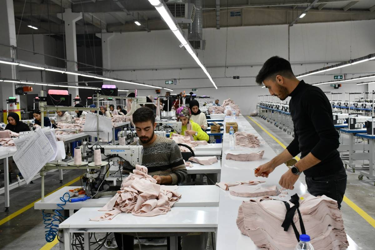 Tekstil fabrikasında çalışanları ziyaret eden protokol üyeleri çalışmalarında kolaylıklar diledi.