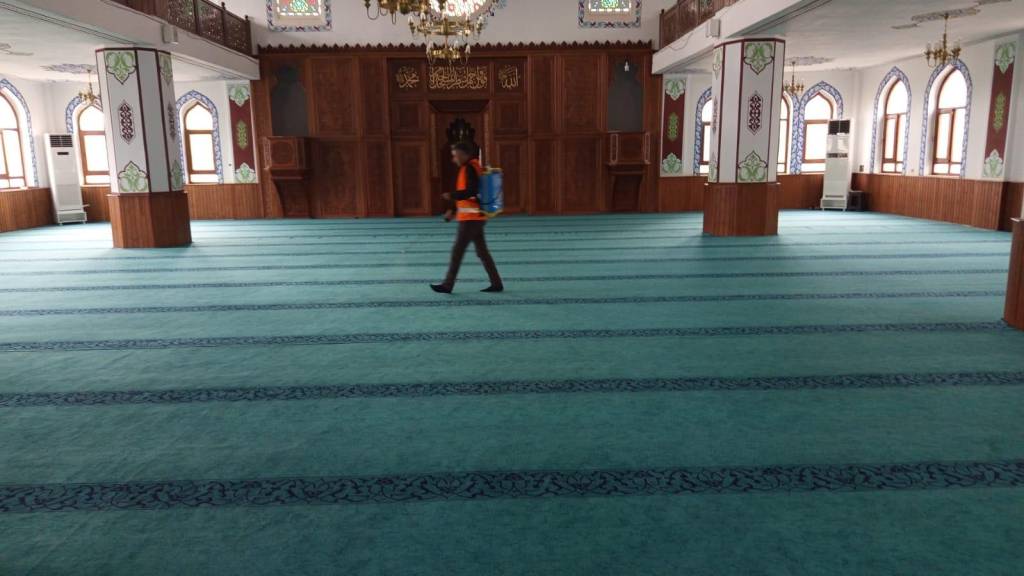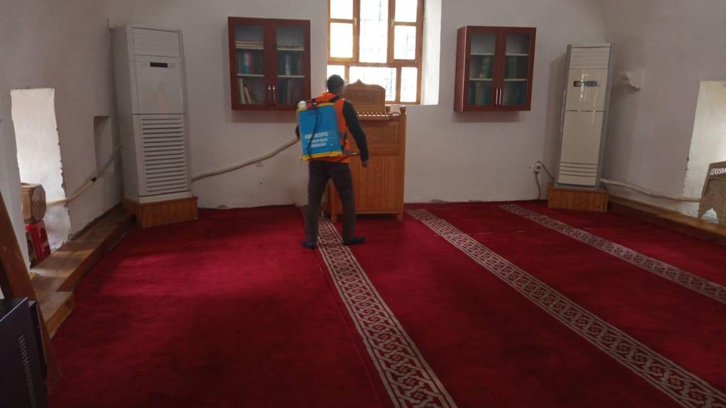 Bayram namazına hazırlık kapsamında Temizlik İşleri Müdürlüğü ekipleri tarafından yürütülen çalışmalarla cami ve mescitlerin temizliği tamamlandı. Ardından, camiler gül suyu ile yıkanarak bayram namazına gelen vatandaşların ferah bir ortamda ibadet etmeleri sağlandı.