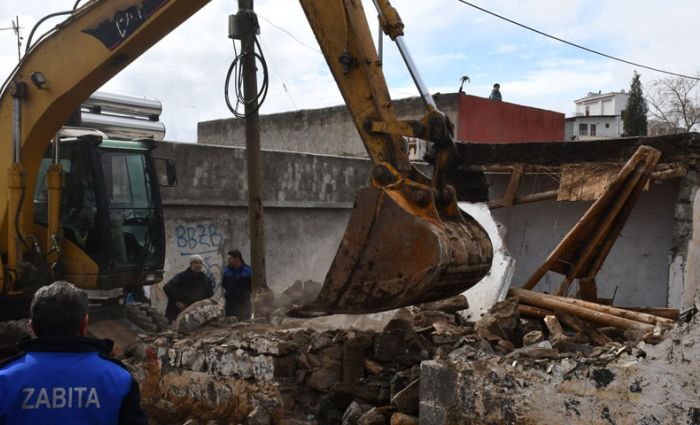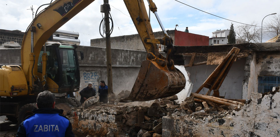 Yıkım öncesinde, metruk yapı sahiplerinden alınan yazılı onayın ardından tehlike arz eden ve kısmi çökme yaşanan yapılar ekipler tarafından kontrollü olarak yıkılıyor.