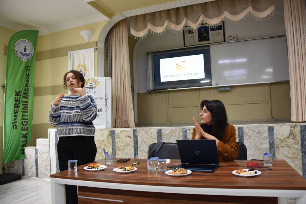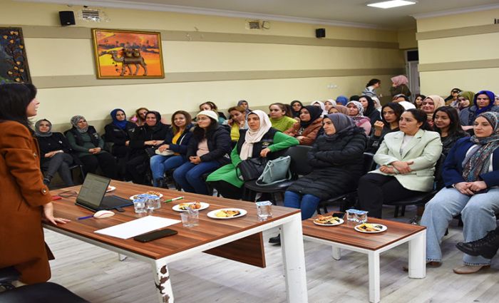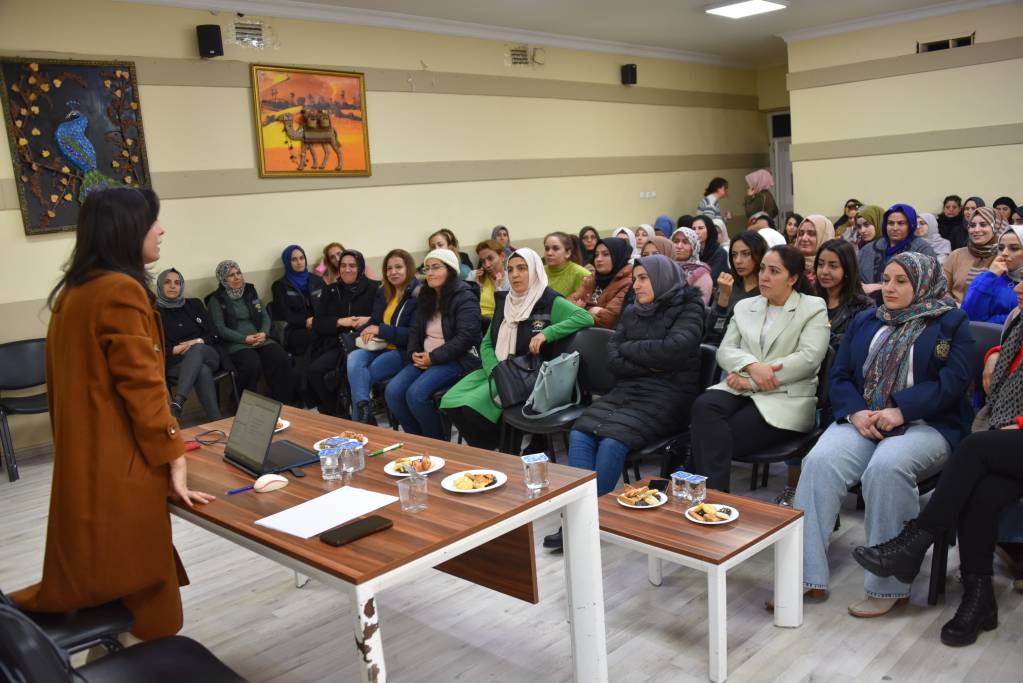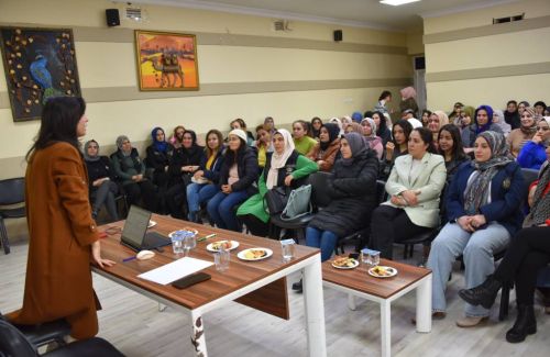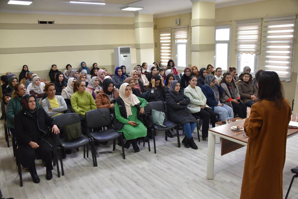 Kadın ve Aile Hizmetleri Müdürlüğü ile Suna'nın Kızları Merkezi tarafından Halk Eğitim Merkezi konferans salonunda düzenlenen seminere, uzman psikolog Feride Canbek ve program uzmanı Ceren Arslan katıldı.