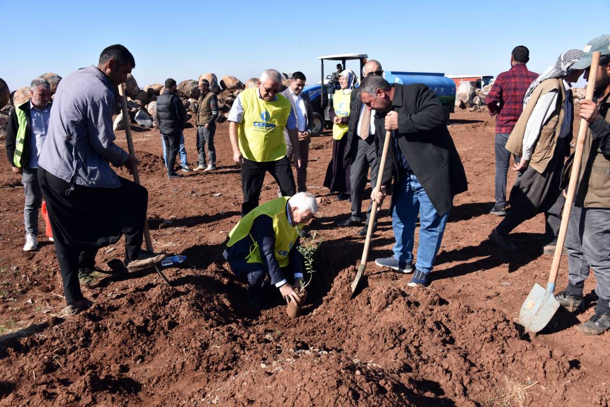 Siverek ilçesinde, çevre dostu projeler geliştiren Çevre Kuruluşları Dayanışma Derneği (ÇEKUD), Turkish Technic'in ve Siverek Belediyesi ortaklaşa hayata geçirdiği "Çiftçiye Hayat Olsun" projesi çerçevesinde 12 bin meyve fidanı toprakla buluşturuldu.
