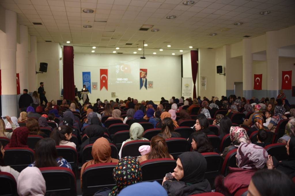 Programa konuşmacı olarak katılan Doktor Rauf Yanardağ kadına şiddetin önlenmesine yönelik bilgiler verirken Avukat Elif Nur Aslan kadınların hukuki haklarını anlattı.