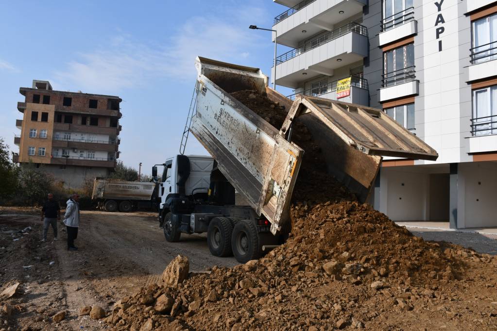 Bu kapsamda çalışan ekipler, Ayvanat Mahallesi'ndeki yeni yerleşim yerlerinde kamyonlarla taşınan malzemeyi iş makineleri yardımıyla dağıtarak yolların altyapısını hazırlıyor.