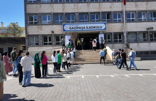 Gazipaşa İlkokulu’nda düzenlenen sınava yaklaşık 200 öğrenci katılırken girişlerde sıkı önlemler alındı.