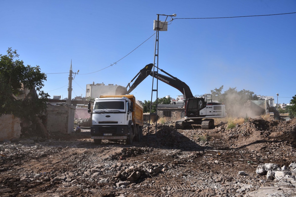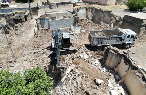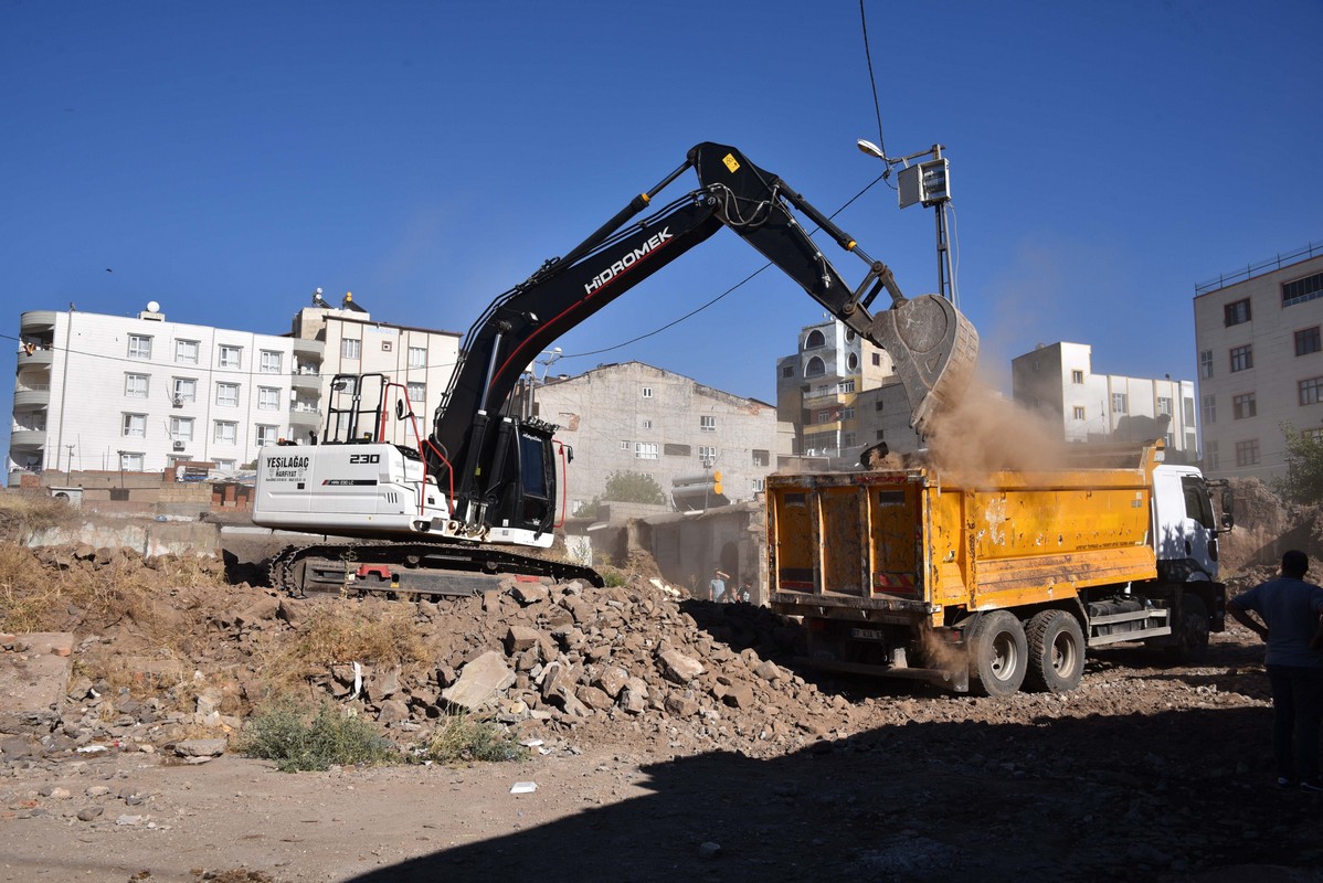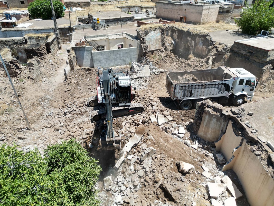 Siverek Belediyesi ilçe merkezinde uyuşturucu bağımlıların yuvası haline gelen ve yıkılmaya yüz tutan metruk evlerin yıkımına başladı.