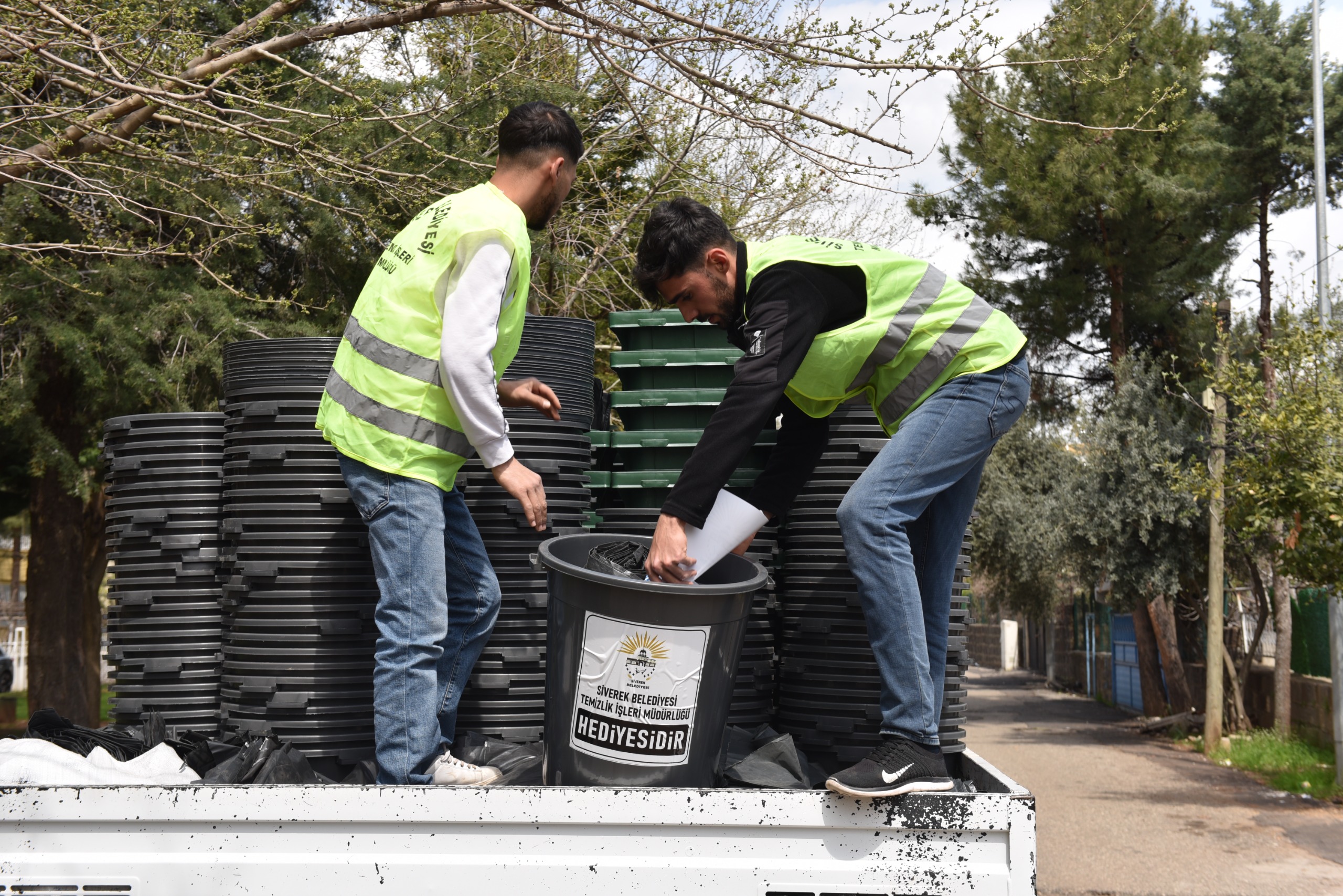 Temizlik İşleri Müdürlüğü tarafından uygulanmaya başlanan 'çöp konteynersiz yaşam' projesinde mevcut metal çöp konteynerlerinin toplanarak yerine daha pratik kova ve plastik konteyner bırakılıyor.